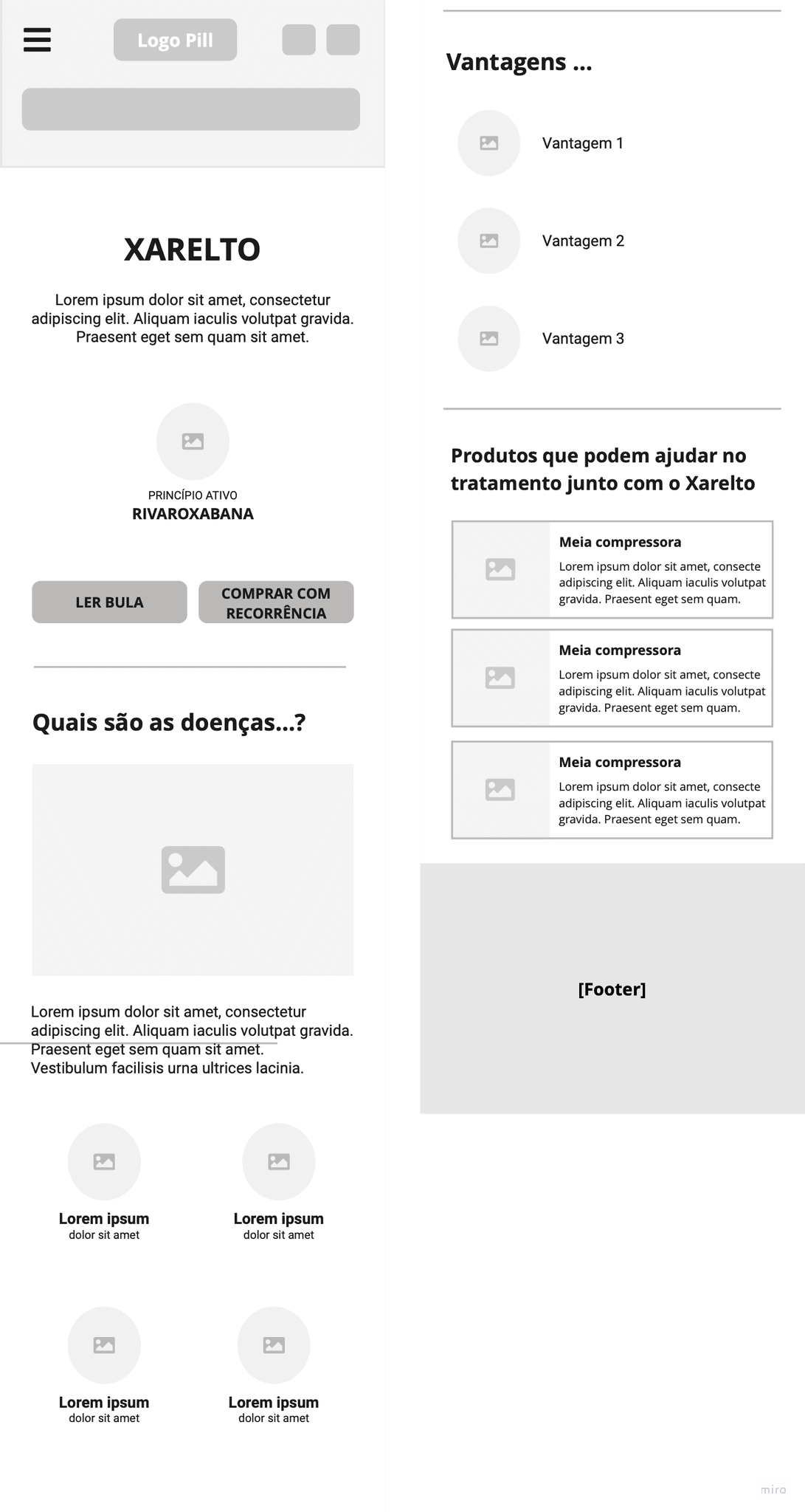 Prototyping: Once the wireframes were reviewed by the team, I developed the high-fidelity prototype. The design aimed to create a more accessible and informative experience, positioning Pill as a trusted digital pharmacy in partnership with Bayer.